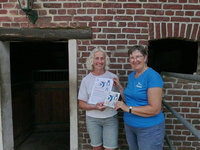 [Oktober 2024] Gartenbesitzer:innen können die Biodiversität entscheident fördern. Wenn sie so engagiert zu Werke gehen wie Angelika Schmitz und Marcus Esser, wachsen Vielfalt und Anzahl der Pflanzen und Lebewesen. Seit einigen Jahren gestalten die beiden Naturschützer einen alten Garten im Sinne des naturnahen Gärtnerns um. Sie ersetzen nicht heimische Pflanzen durch Bäume und Stauden, die Lebensräume sind für Insekten, Käfer und Raupen der Tag- und Nachtfalter. Sie legen Totholzecken an, die trotz des schaurigen Namens Orte voller Leben sind. Sie achten auf die Qualität des Bodens und berücksichtigen Licht und Schatten. So bekommt jede Pflanze, was sie braucht, und die Pflanzen sind Nahrung und Entwicklungsraum der Tierwelt. "Wenn wir im Juni vor unserer Haustür sitzen und die Glühwürmchen beobachten können, gibt uns das die Bestätigung, dass sich unser Einsatz lohnt", sagen die beiden Gartenbesitzer. Eine weitere Bestätigung erhielten sie vom NABU NRW, der ihnen die Auszeichnung "Schmetterlingsfreundlicher Garten" zuerkannte. Carmen Rothermel, Pressesprecherin des Bezirksverbands, überbrachte die Urkunde und das Schild für die Gartenpforte.