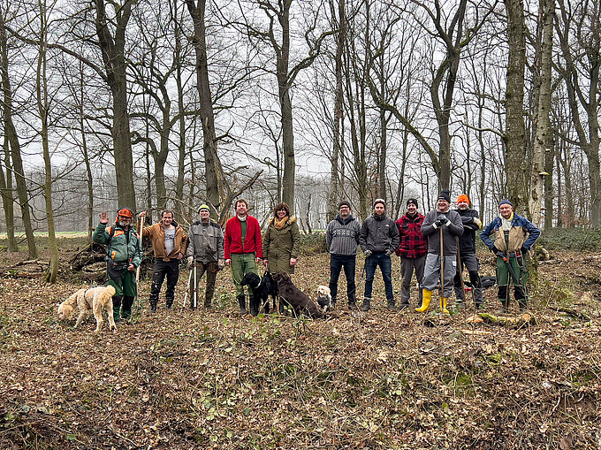 Nach der erfolgreichen Freistellung der Flachskuhlen im Gebiet 14 Rueten ging am 11. Februar 2023 eine motivierte Gruppe aktiver Naturschützer in der Bockerter Heide ans Werk. Mit Freischneidern, Astscheren, Hacken und Harken wurden die Brombeeren entfernt, mit Schubkarren und Planen aus dem Gelände herausgeholt und schließlich auf Haufen am Weg abgelagert. Einige dieser Haufen sollen als Unterschlupf für Kleintiere auf dem Gelände bleiben.